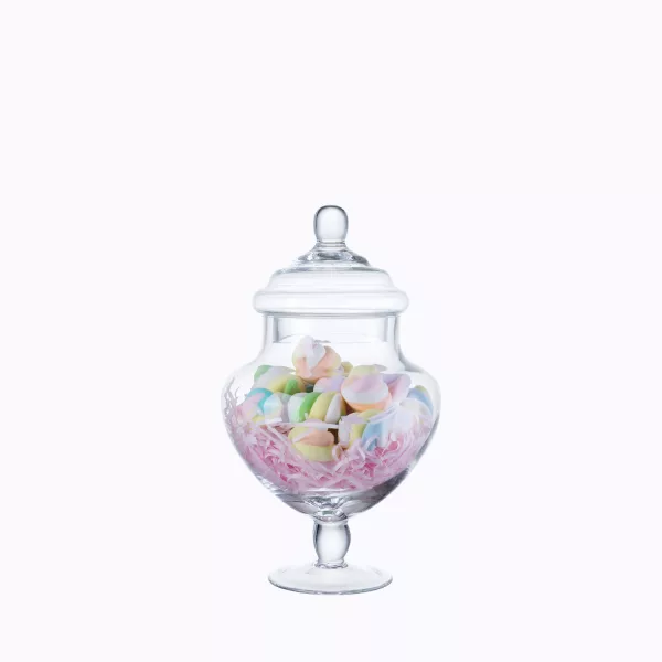 Heart shaped apothecary glass jar in practical size. Display your decor ideas through our clear glass jar, place some treats for your guest inside and call it a candy jar, or simply use it as storage glass jar for bathroom products. Cotton swabs, makeup or bath salt. Stella Baicø handblown glassware is made to withstand impact by kids or guest, making it a long lasting gift.