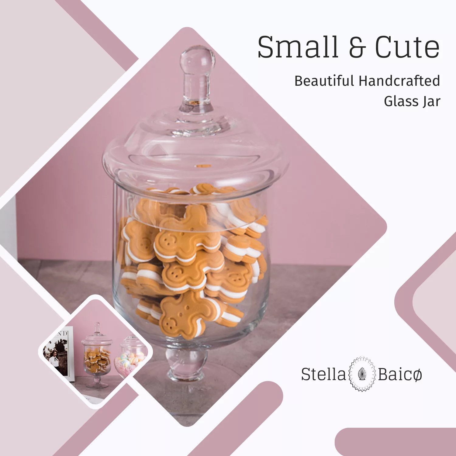 Cute and practical small storage glass jar for essential bathroom items or simply as candy jar for treats on your living room table. Stella Baicø clear glass in combination with the wide shape, make sure this handcrafted apothecary glass jar works well for displaying your favorite products. Wherever and whenever.