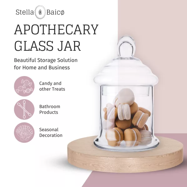 Small and cute glass container for decorative items like seasonal decoration or as part of your candy buffet. Stella Baicø handblown glass jar lid in beautiful shape is made from high quality and durable clear glass. This small storage glass jars fits on any counter and even as glass storage jar in your bathroom, store cotton balls or make-up in it.
